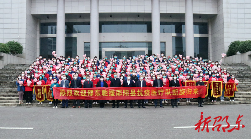 新邵东客户端11月21日讯(记者 肖安 刘意忠 通讯员 王瑛)11月21日上午,邵东市举行欢迎援助邵阳县医务人员仪式,迎接圆满完成赴邵阳县支援任务的200多名抗疫英雄平安凯旋。