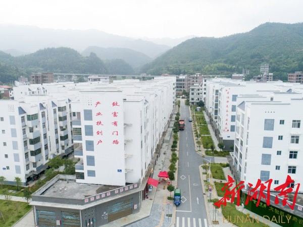 (9月7日,桂东县沙田镇大水村异地扶贫搬迁安置点。该安置点配备了幼儿园、村级服务中心等公共服务设施,道路、电力、绿化等基础设施完备。湖南日报记者 傅聪 摄)