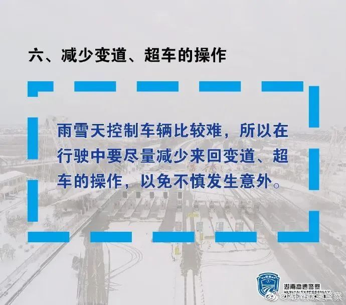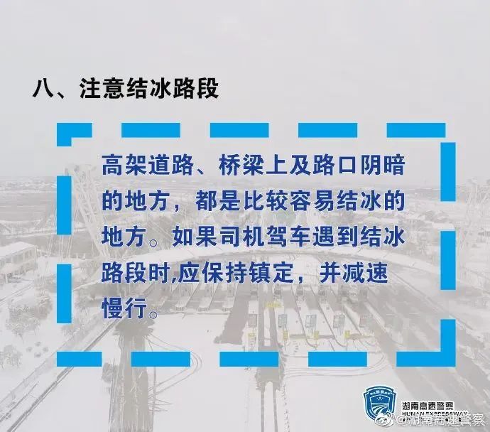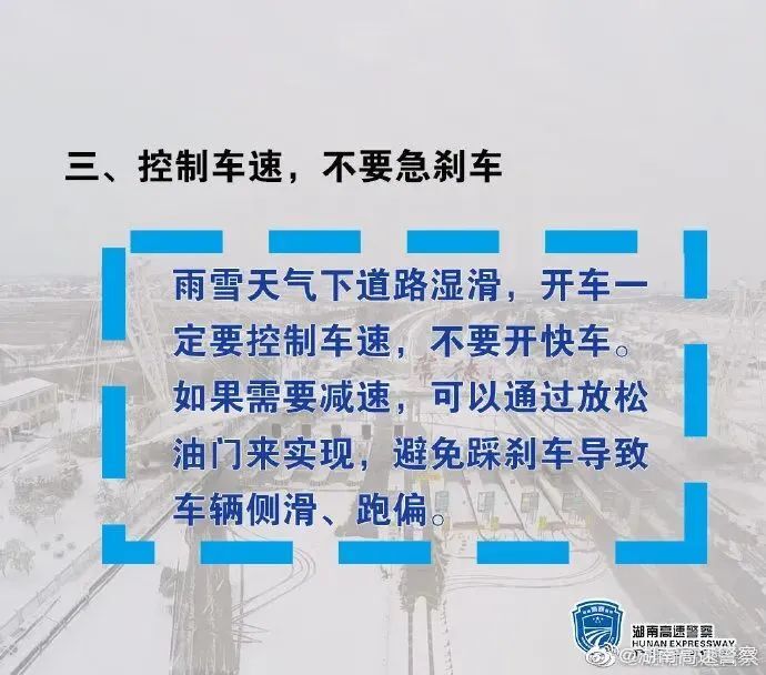 连日来,低温、雨雪、冰冻天气来袭,湖南高速温馨提示,出行前应留意天气、路况信息,行车途中请务必减速慢行,谨慎驾驶,牢记以下安全行车注意事项。