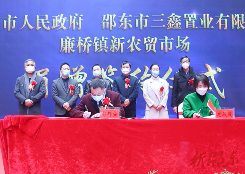 龙薇薇代表市人民政府与廉桥镇乡贤、三鑫置业有限公司董事长赵群安签订捐赠移交协议。龙薇薇表示,此次捐赠既是廉桥镇推进城镇化建设的一件大喜事,也是邵东市委、市政府推进“迎乡贤 建家乡”活动的又一重要成果,十分感谢乡贤赵群安对家乡建设的大力支持。接下来,市政府将把三鑫农贸市场的“民生性、公益性、社会性”放在首要,将其作为一项重要的民生工程来抓,进一步提升农贸市场的管理服务水平,为市民购物买菜提供更加安全便利的环境,让老百姓的菜篮子拎得更轻松、更放心。