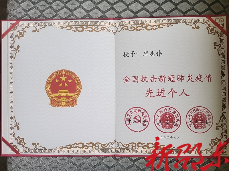 唐志伟以忠诚和担当守护着人民群众的健康,是全市抗疫一线工作者的优秀代表。“党和国家给我们基层工作人员这么高的荣誉,我十分荣幸和激动,我将把这份荣誉化作动力,在今后的工作中为人民作更大贡献,守护人民的健康!”获奖后的唐志伟激动地说。
