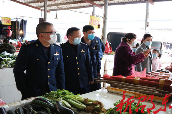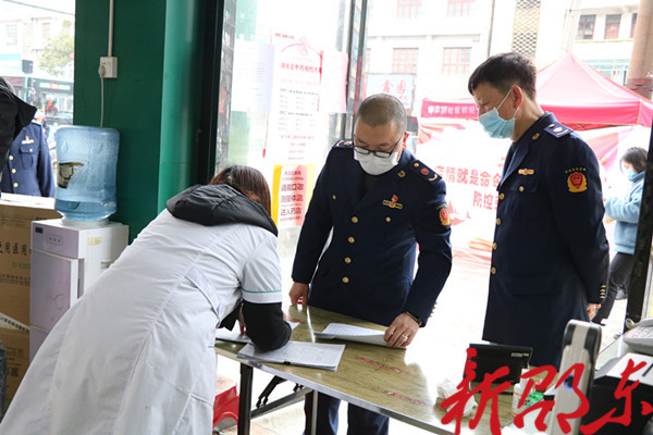新邵东客户端3月18日讯(匡光普 谢俊杰 禹建华)岁末年初,新冠肺炎疫情席卷全国,邵东市的疫情防控形势也日趋严峻,一场没有硝烟的疫情攻坚战正在全面打响。为了人民群众的生命健康,一群身着蓝色制服、肩佩红色国徽的身影,穿梭在大街小巷,他们就是逆行而上、向阳而生的邵东市市场监督管理局的市监卫士。牛马司市场监管所副所长姜沐黎就是其中的一员,他不善言辞,带着眼镜,个头不高,但在疫情防控工作中,他却勇往直前、无怨无悔,一直坚守在疫情防控第一线。