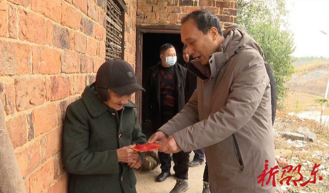 新邵东客户端1月17日讯(记者 邓远)1月16日上午,邵阳市政协党组成员、副主席杨博理到简家陇镇古塘坪村走访慰问困难群众,为他们送去党和政府的关怀和温暖,送上春节的问候与祝福。邵东市政协副主席谢光远参加慰问。