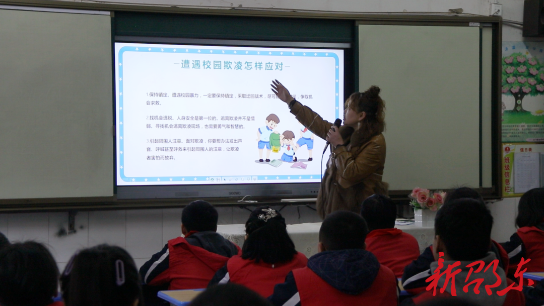 2月8日上午,在邵东市城区第一完全小学344班的开学第一课上,班主任老师不仅从克服寒假综合征、新学期新计划等方面进行了开学收心教育,而且重点围绕校园安全、交通安全、食品安全、学生防溺水、遭遇校园欺凌怎样应对等方面进行安全教育,普及学生的安全知识,增强学生安全防范意识。“我知道了防溺水的‘六不’,知道了遇到校园暴力自救的方法,知道了如何防止性侵事件的发生,更加懂得了遵守交通规则的重要性。这节课让我受益匪浅,我一定会将安全铭记于心。”学生邹申寰说道。