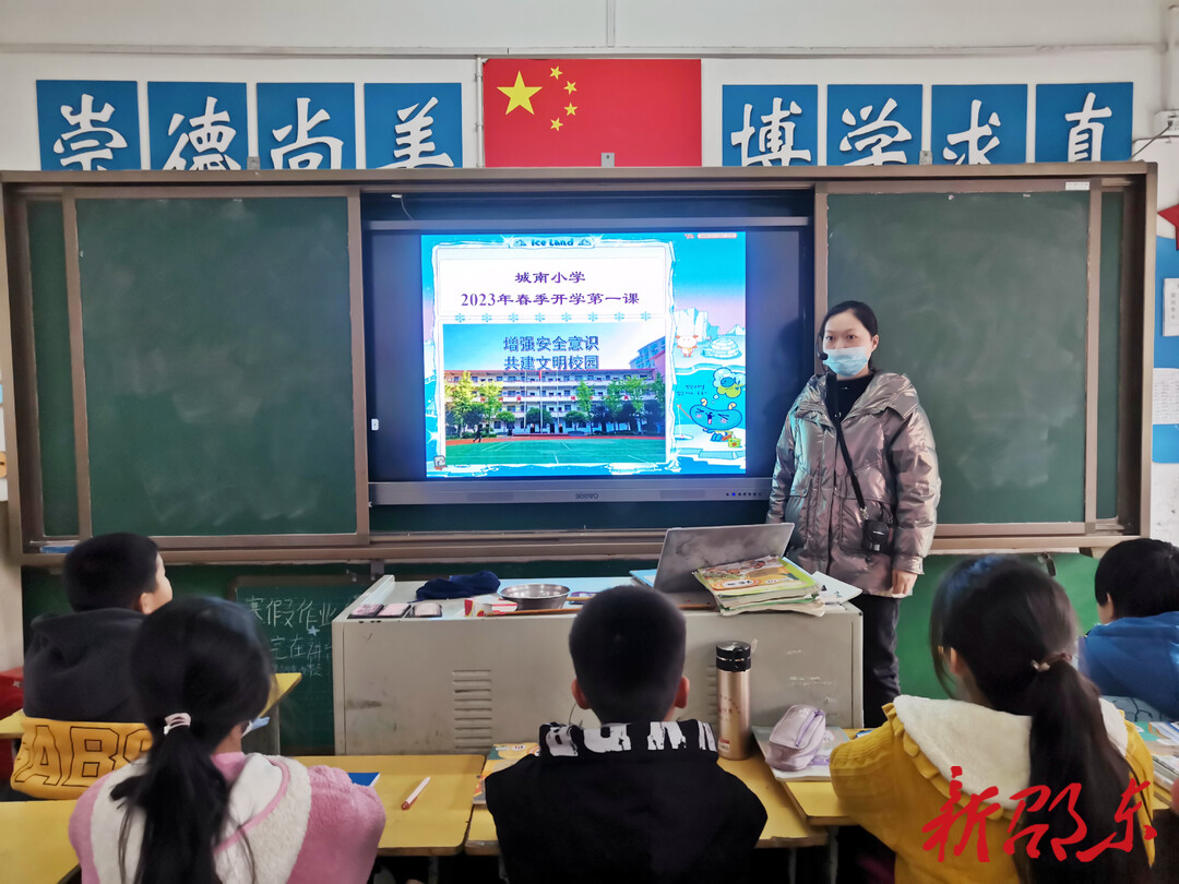 在邵东市城南小学,各班级的开学第一课以“增强安全意识,共建文明校园”为主题,老师们选择了和学生们生活息息相关的安全常识进行教育,通过课件、生动的演说把安全防护知识传递给学生们,学生在课堂上认真聆听,积极互动。在新的学期里,城南小学全体教师将继续秉持“安全重于泰山”的原则,提高自己的责任心,为学生们创造一个安全、文明、快乐的校园活动环境。