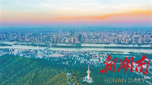 (岳麓山、湘江、橘子洲与长沙城交相辉映,好一幅山水洲城秀美画卷。湖南日报记者 辜鹏博 摄)