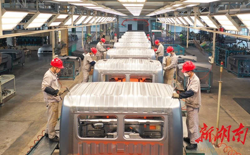 10月7日,衡阳市白沙洲工业园区湖南华菱汽车有限公司焊装车间,工人们在紧张的工作中。 曹正平 摄