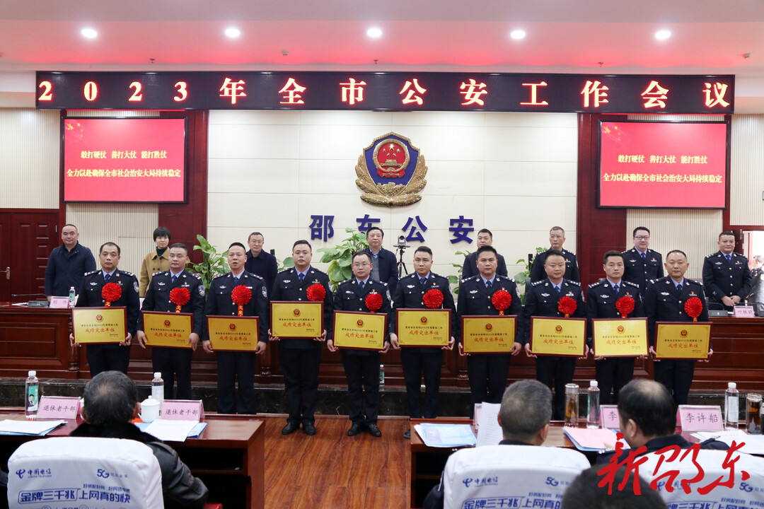 2022年,邵东公安充分发扬“敢打硬仗、善打大仗、能打胜仗”的优良作风,以最强担当扛牢使命,以最大力度守护平安,以最高标准护航发展,攻坚克难、砥砺奋进,战胜了诸多风险挑战,完成了艰巨繁重的任务,确保了邵东社会大局持续平安稳定,公安工作和队伍建设质态显著提升,夺取了党的二十大安保维稳攻坚战和疫情防控阻击战的全面胜利,禁毒民调排全省第九、邵阳市第一,荣获全省公安机关加强派出所工作成绩突出单位,邵阳市绩效考核优秀单位、打击治理电信网络诈骗犯罪工作成绩突出单位、“利剑护蕾”专项行动成绩突出单位等荣誉称号。