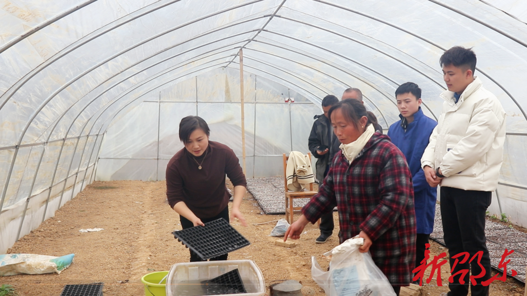 新邵东客户端3月8日讯(记者 刘意忠 通讯员 刘昭云)3月3日,在九六农庄的育苗大棚里,刘黎正在指导员工播种,培育新一年的希望。