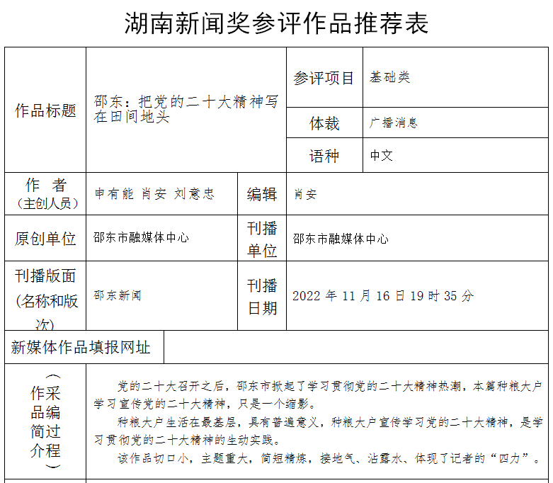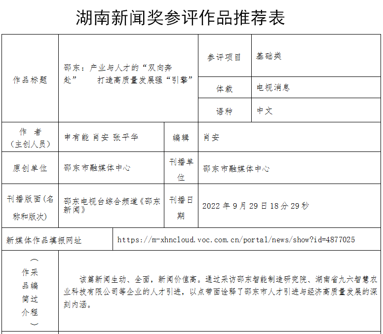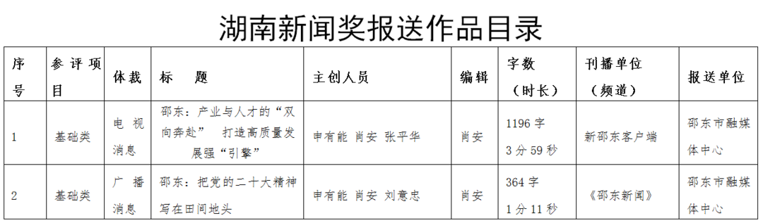 邵东市融媒体中心2022年度湖南新闻奖报送作品公示