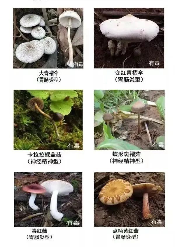 毒蘑菇所含毒素较为复杂,或因地区、季节、品种和生长条件的不同而各异。毒蘑菇中毒潜服期为2小时至24小时,有的仅10分钟左右。误食毒蘑菇,肝损害型中毒最为凶险,表现为恶心、呕吐、肝区疼痛等症状,部分患者可能会伴有精神症状。目前对有毒蘑菇中毒尚无特效疗法,且中毒症状严重、发病急、死亡率高。