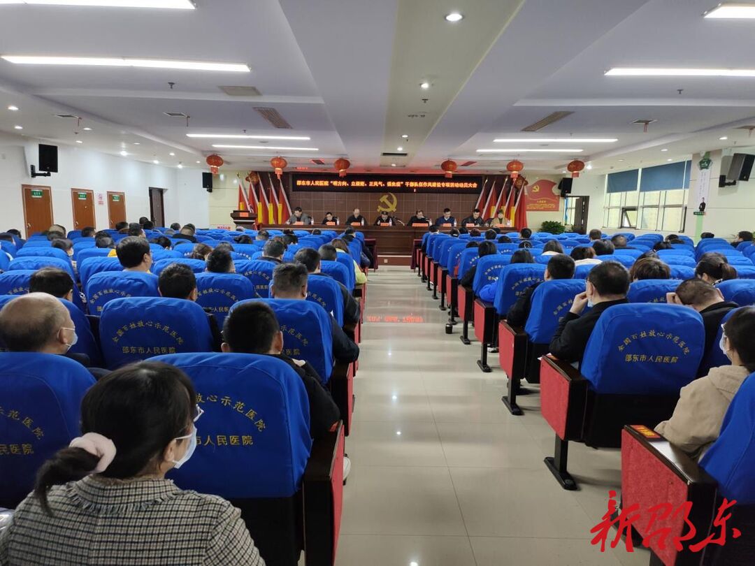新邵东客户端3月24日讯(记者 张亦斌 通讯员 申秀梅)3月23日下午,邵东市人民医院召开“明方向、立规矩、正风气、强免疫”干部队伍作风建设专项活动动员部署大会,动员全院上下以深入开展专项活动为契机,结合医院创建湖南省“高质量发展示范医院”“清廉医院”和开展“卓越服务”工作,严党风优院风转作风正医风,切实增进人民群众健康福祉,推动医院高质量发展,为加快推进医院创建三级综合医院“争甲保乙”和早日建成区域医疗中心提供坚强的作风保障,为建设社会主义现代化新邵东作出新贡献。