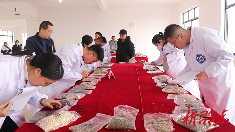 在限时1小时的中药材性状和真伪鉴别环节中,选手们通过眼看外观、手摸药感、鼻嗅药性、口尝药味等辨识手段,认真细致地对50味中药材的性状和40味中药材的真伪进行鉴别。