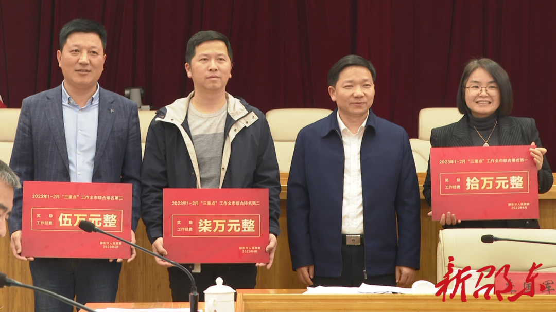 会议通报了2023年1-2月“三重点”工作落实情况和3-4月“三重点”工作进度情况;当前重点工作的牵头单位汇报了工作情况;相关单位作了“三重点”工作经验和表态发言;会议还对仙槎桥镇、流光岭镇、周官桥乡、市发改局、市商务局5个“三重点”综合考核靠前的单位进行了表彰奖励。