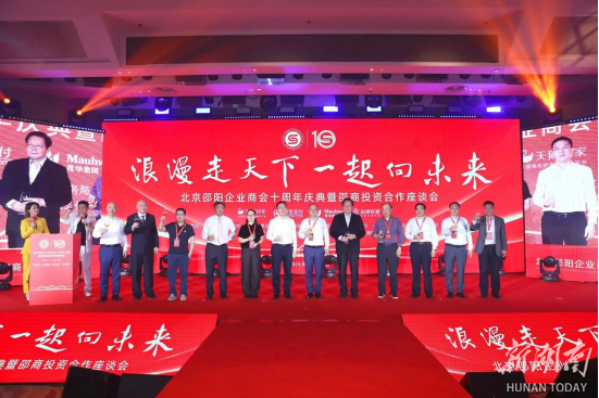 4月28日,以“浪漫走天下 一起向未来”为主题的北京邵阳企业商会十周年庆典暨邵商投资合作座谈会在北京湖南大厦举办。