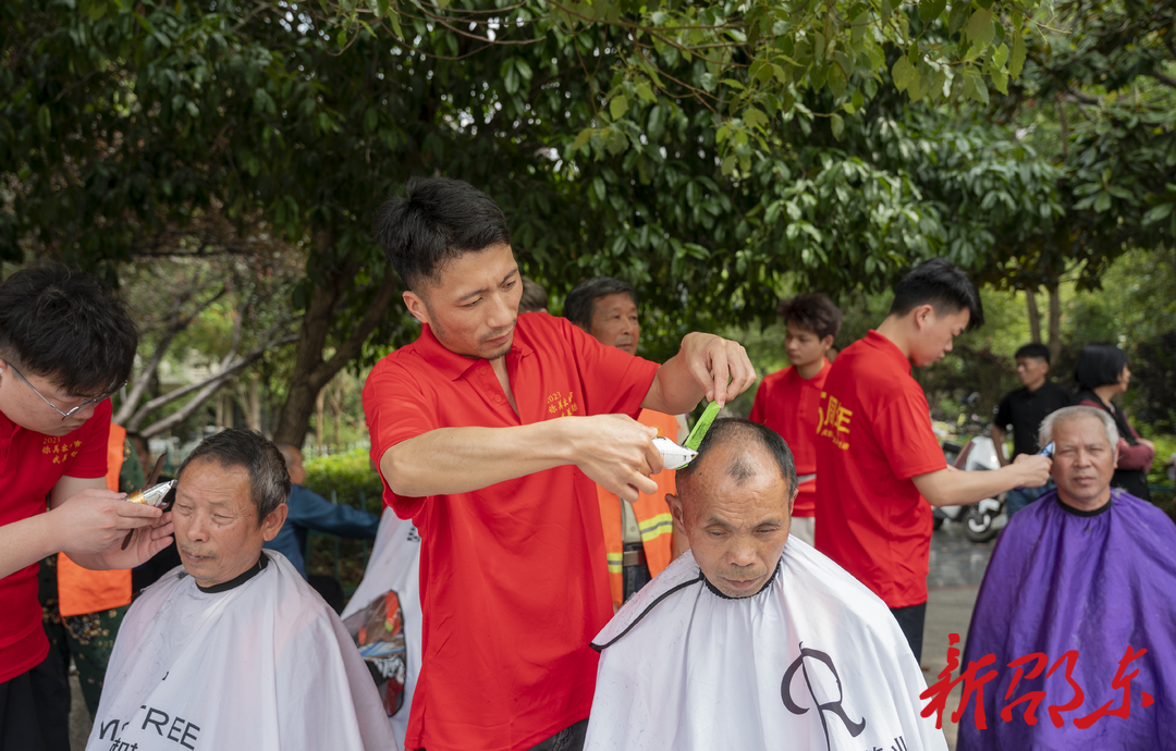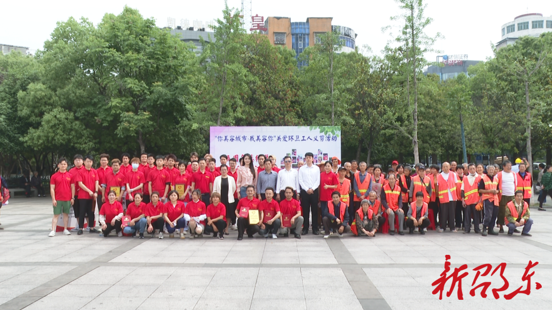 新邵东客户端5月15日讯(记者 姚天启)5月15日,共青团邵东市委、邵东市环卫服务中心联合市美发美容协会筹委会,在百富广场开展“你美容城市,我美容你”关爱环卫工人义剪活动第五十三场暨五周年总结活动,为勤劳付出的环卫工人们送去温暖与关怀。市人大常委会党组副书记、副主任贺铁民,市人民政府二级调研员郭竟成等出席活动。