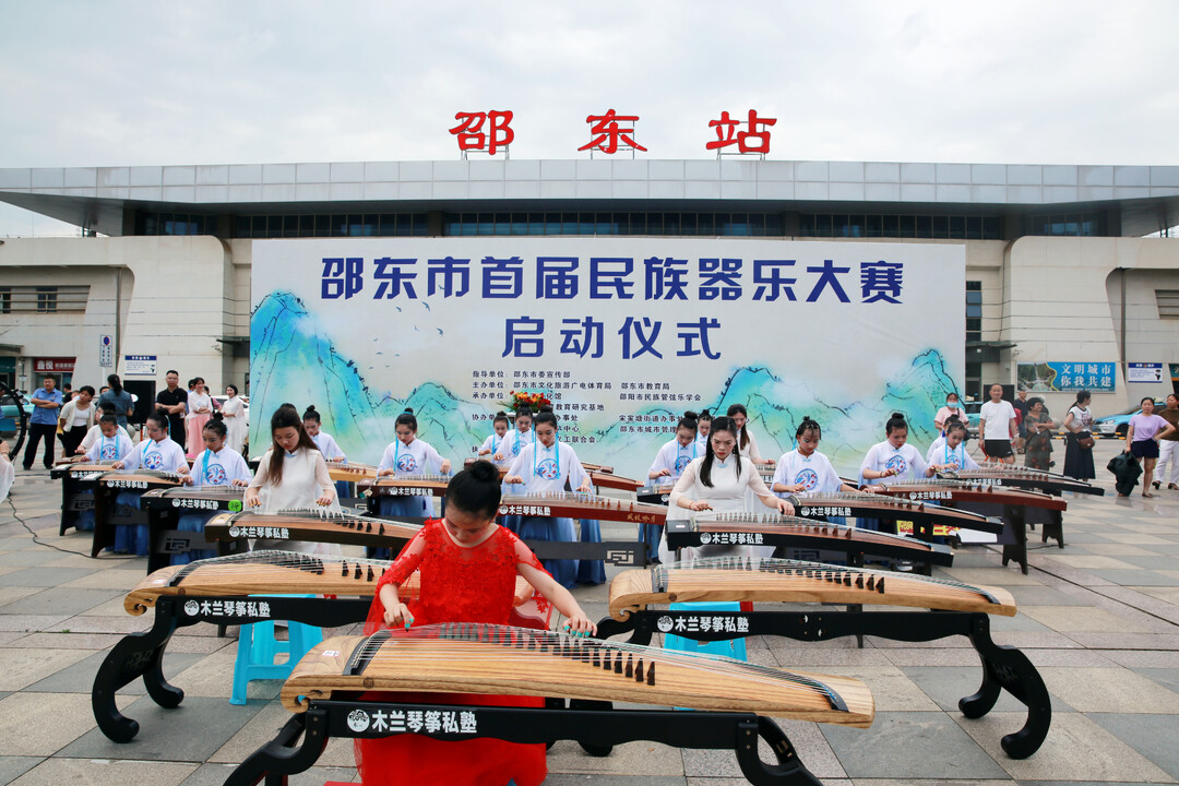 为进一步提高全市民族器乐教学和演奏水平,展示近年来全市民族器乐发展成果,发掘和培养优秀民族器乐演奏人才。由木兰琴筝私塾全程执行的邵东市首届民族器乐大赛启动仪式,于 2023 年6 月17日在邵东高铁站站前广场举行 。