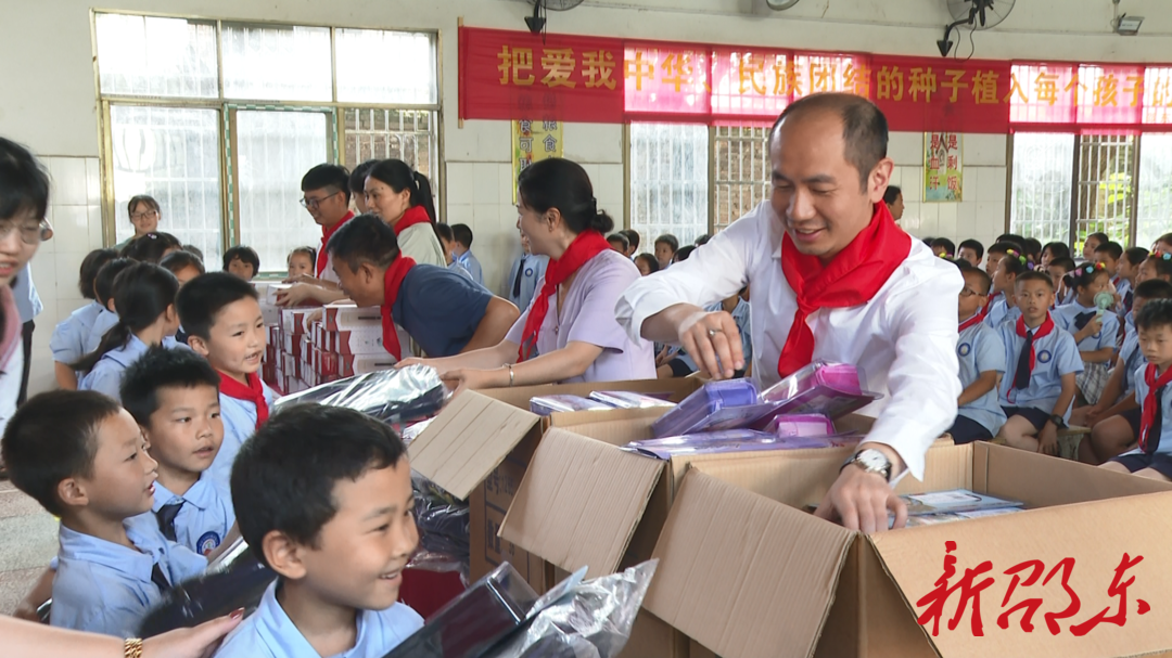 新邵东客户端5月30日讯(记者 姚天启)5月30日,在“六一”国际儿童节即将来临之际,邵东市总工会到界岭镇当家小学开展“六一”关爱外出务工人员子女活动,为当家小学186名学生赠送价值4万余元的学习用具和体育用品,并送上节日的祝福。