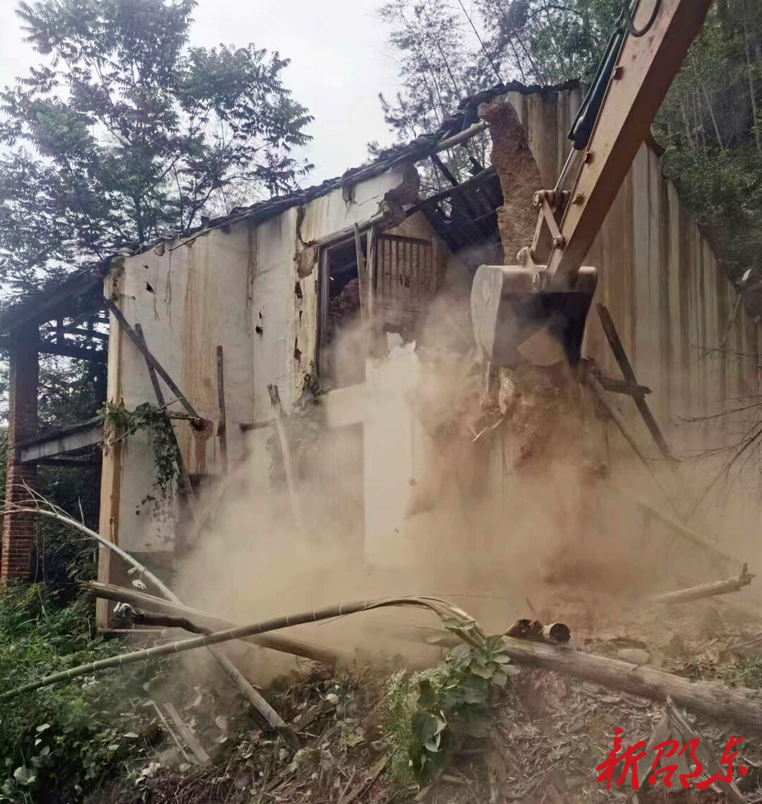 新邵东客户端5月31日讯(通讯员 宁驼玲)近日,伴随着一声声的巨响和飞扬的尘土,位于邵东市灵官殿镇同心村半山腰的两栋危房轰然倒塌。
