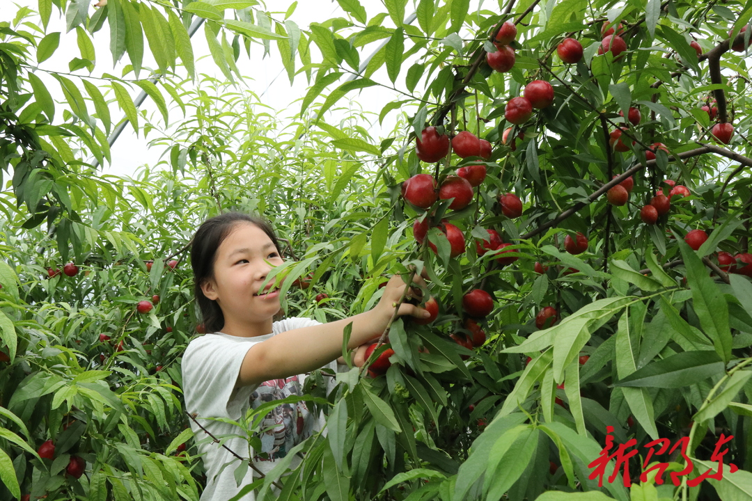 6月3日,在火厂坪镇瓦塘村的桃园基地,100多亩桃树长势喜人。一个个光鲜红润的油桃密密麻麻地挂满枝头,阵阵桃香扑鼻而来,让人垂涎欲滴。一群群游客穿行桃林,体验采摘乐趣,品味自然风情。大家纷纷表示,这里的桃子又甜又脆,特别好吃。
