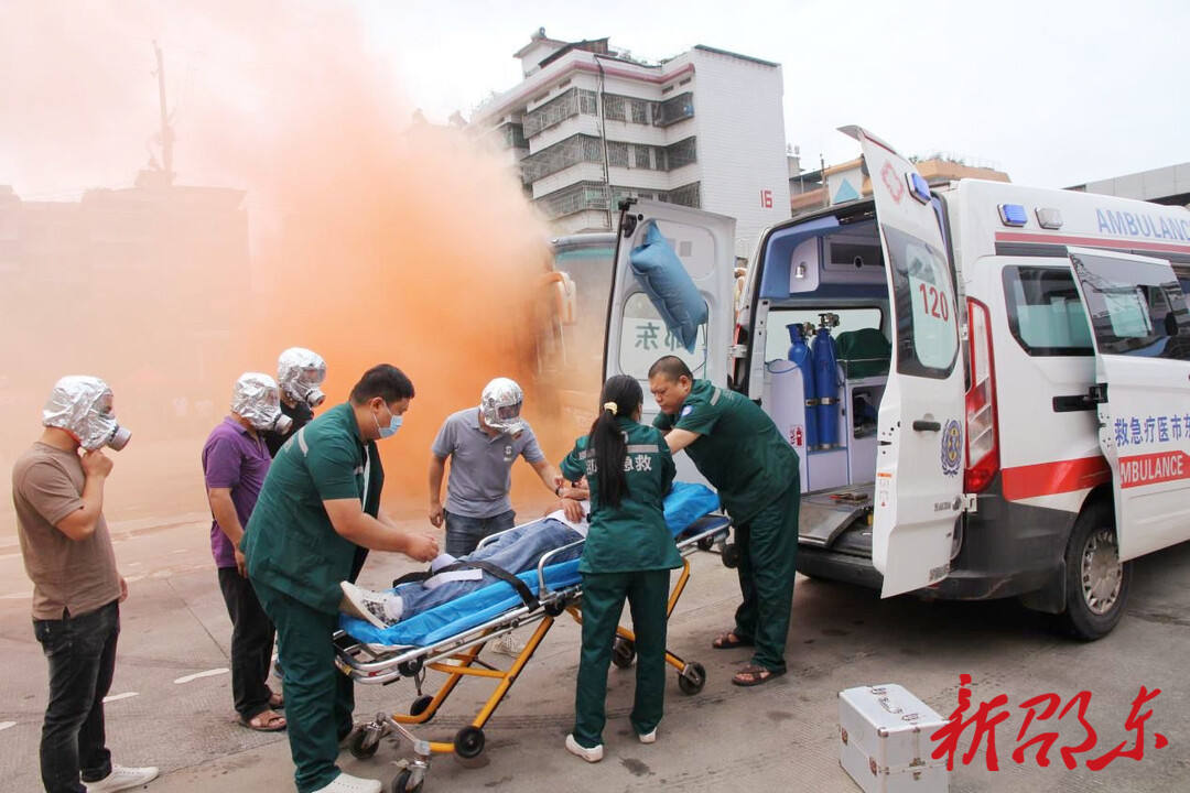 新邵东客户端6月27日讯(通讯员 李高雄 葛蓬花)6月26日,由邵东市交通运输局主办、邵阳湘运集团邵东分公司承办、邵东市交警大队和邵东市消防大队协办的“邵东市交通运输系统2023年安全生产应急演练”在邵东汽车西站举行。