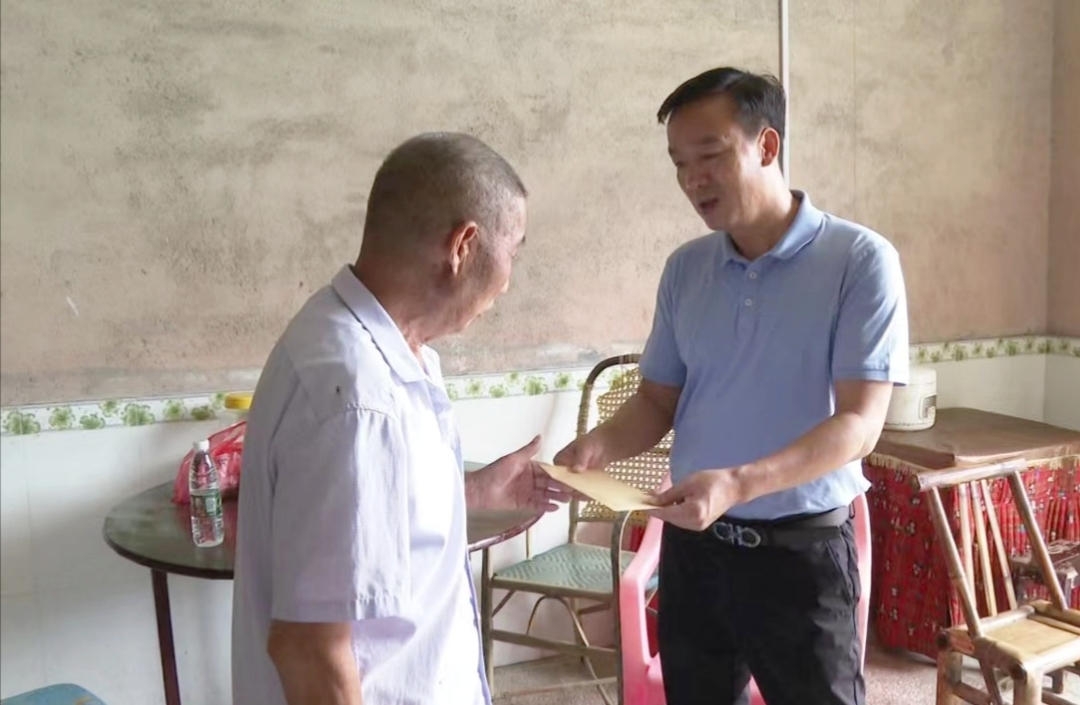 在黑田铺镇大和塘村85岁老党员刘业勋的家中,刘家豪与他话家常,详细询问老人的身体状况和家庭生活情况,并送上慰问金。得知老人作为村支部书记在农村奋斗了38年,刘家豪表示感谢老人为基层的奉献,并叮嘱他要注意身体,保持乐观的心态,继续发挥党员先锋模范作用,为党的事业持续发挥余热。