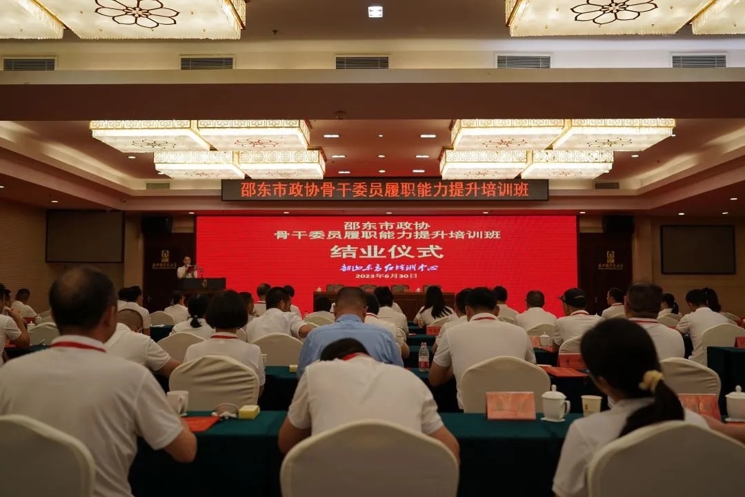 新邵东客户端7月2日讯(通讯员 刘昭云)6月30日,为期5天的邵东市政协骨干委员履职能力提升培训班顺利结业。市政协副主席李和平、赵俊洋、谢艳军,市政协秘书长陈善良出席结业仪式。