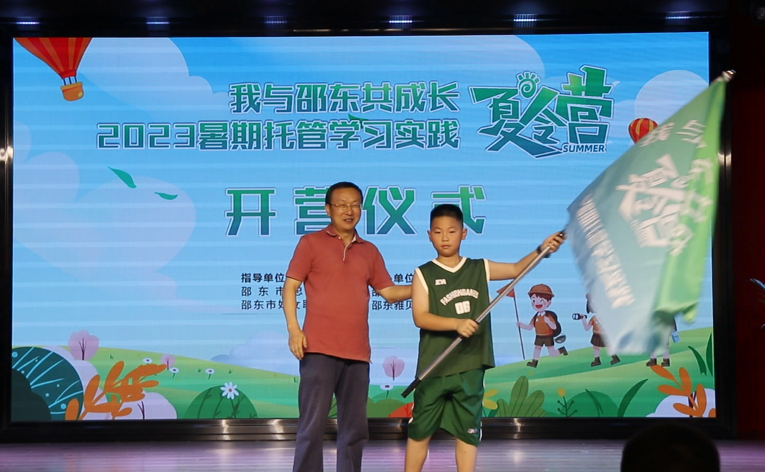 新邵东客户端7月11日讯(记者 肖帅男)7月11日上午,邵东市2023年暑期托管学习实践夏令营开营,为广大职工提供暑期托管服务,切实缓解职工的后顾之忧。邵东市人大常委会副主任、市总工会主席曾铁钧出席开营仪式。