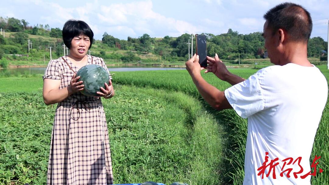 “大家好,我现在所在的位置是简家陇镇黄旗村西瓜种植基地,这里种出来的西瓜清爽可口、口感特别好,又红又好吃。”在简家陇镇黄旗村的西瓜种植基地里,村干部谢艳珍正通过网上直播,帮助瓜农销售西瓜。黄旗村西瓜种植面积近200亩,每年西瓜丰收时,村里都会组织人员通过电商平台,助力瓜农销售。
