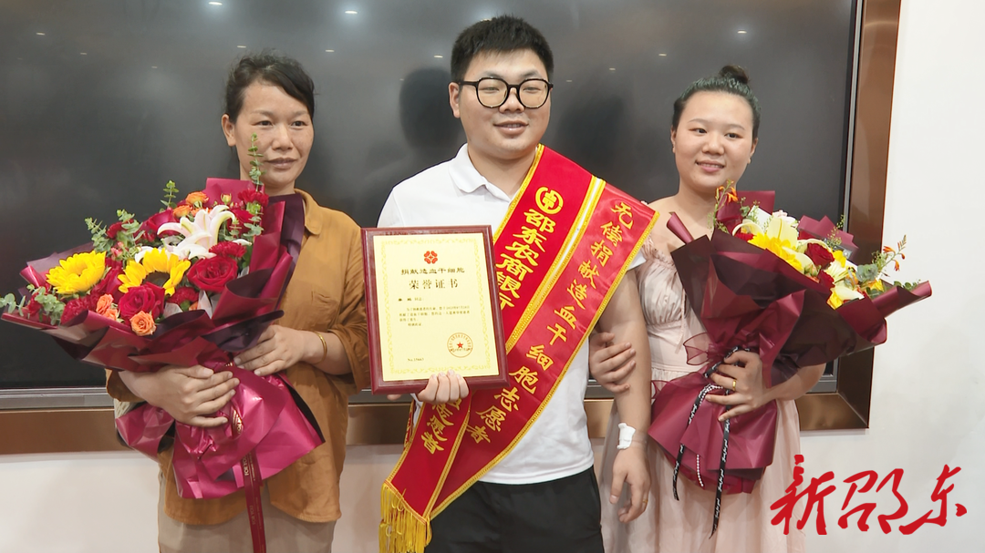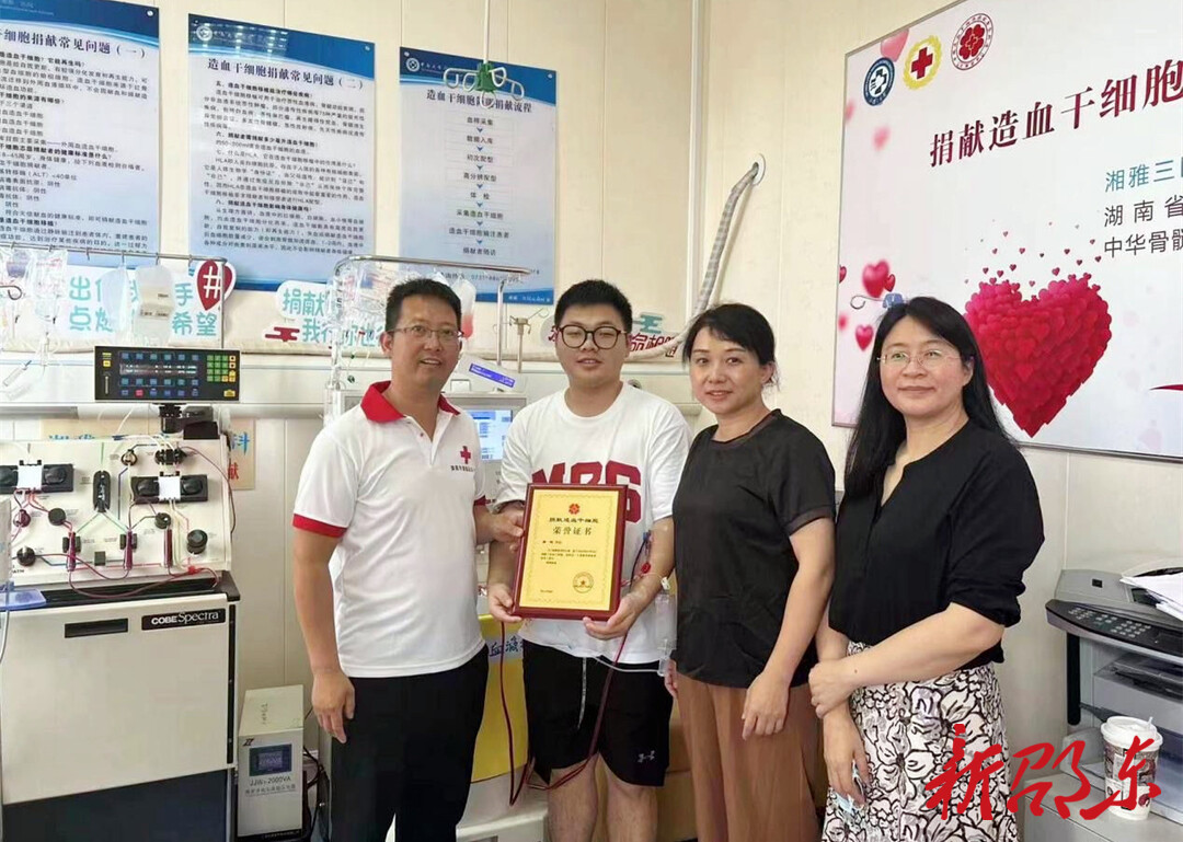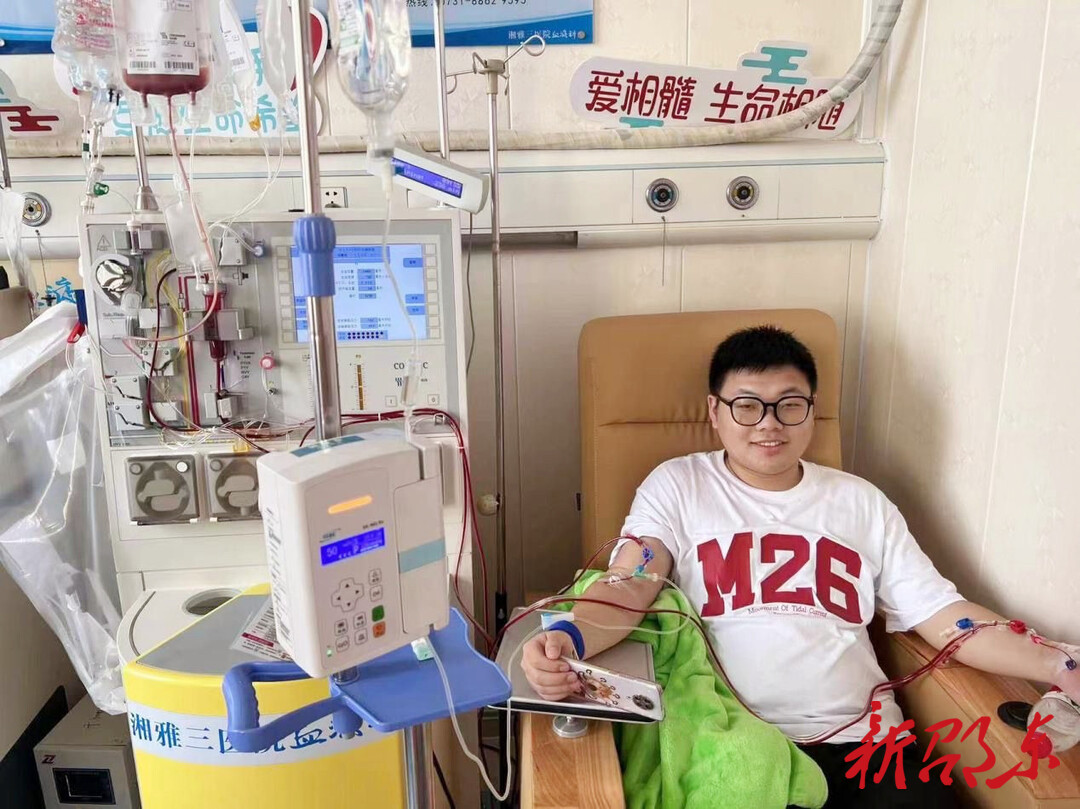廖鹏今年25岁,邵东农商行员工。他是全国第15663例、湖南省第1080例、邵阳市第13例、邵东市第6例造血干细胞捐献者。为了确保捐献造血干细胞的安全,7月15日,廖鹏在女朋友的陪同下住进湘雅附三医院血液科造血干细胞采集中心,接受为期4天的动员剂注射。他这一次造血干细胞捐献采集了5个小时,共采集了352毫升,采集完毕后,造血干细胞于当天被运送至上海用于临床医疗救治。