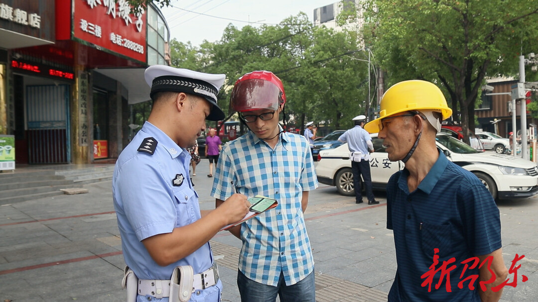 8月17日,在邵东市金龙大道与兴和大道交叉口,邵东市公安局交警大队民警正在开展“戴帽工程”百日攻坚执法检查。现场,部分市民骑行电动车未戴安全头盔,将头盔放在后备厢;部分驾乘人员违规搭载人员,都被执勤民警拦下。执勤民警按照讲法和说理结合、处罚与教育并重、宣传与管控并举的原则,宣传佩戴安全头盔的重要性,耐心劝导市民戴上安全头盔,进一步提升群众的文明意识、守法意识,积极引导广大群众自觉抵制交通违法行为。
