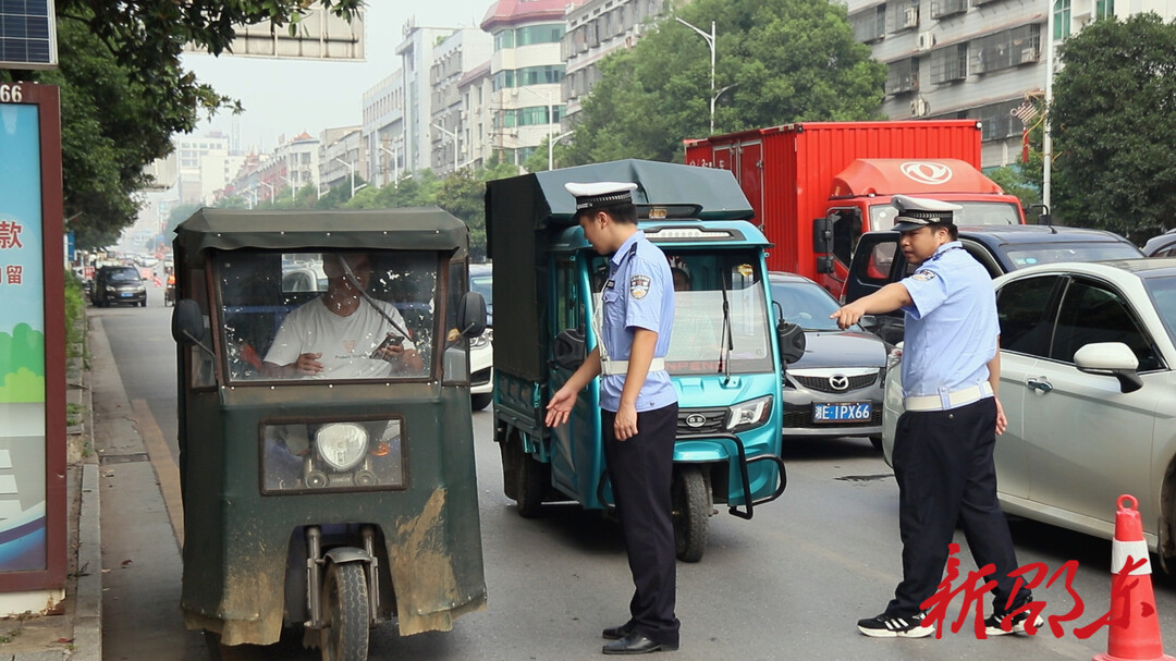 邵东交警以城区、城郊接合部、农村集市等摩托车、电动车出行密集路段为重点,设置了60多个执勤点,抓住摩托车、电动车出行高峰,强化现场执法力度,从严查处摩电无牌无证、不戴头盔、违法载人、闯红灯、加装伞具、酒醉驾等重点违法行为。对驾乘摩托车、电动车不戴安全头盔、违法载人且无证驾驶的一律予以行政拘留。