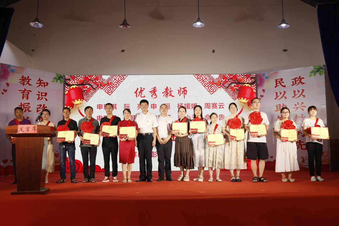 本次表彰大会共表彰优秀教师10人、先进教育工作者3人、坚守满30年教师奖13人、坚守满20年教师奖4人、2023年统考各科第一名教师奖37人、考取“双一流”大学研究生11人、考取非“双一流”研究生12人、考取“双一流”大学学生7人、考取本科以上励志学生9人、2023年初升高考试前十的10名学生、品学兼优的励志中小学生20人,奖励金额高达28.8万元。