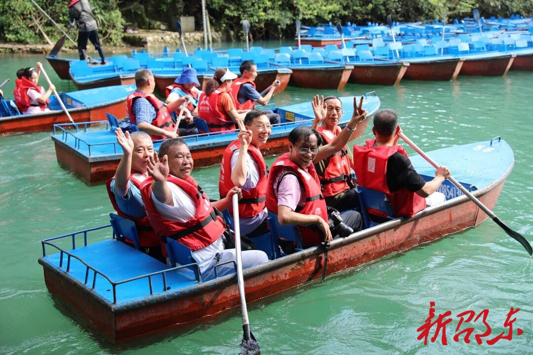 采风团成员在小七孔景区鸳鸯湖划船游湖