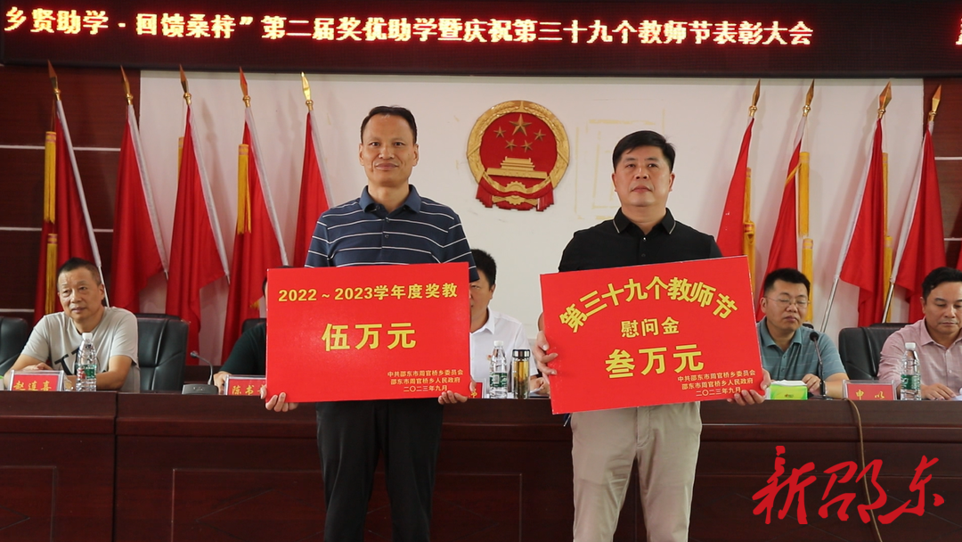 新邵东客户端9月8日讯(记者 曾超众 实习记者 赵偲苗)为进一步弘扬尊师重教的良好风尚,鼓励全乡学子勤奋努力、勇争一流。9月8日上午,邵东市周官桥乡召开“乡贤助学·回馈桑梓”第二届奖优助学暨庆祝第三十九个教师节表彰大会,对一批优秀学子和优秀教师进行表彰奖励。