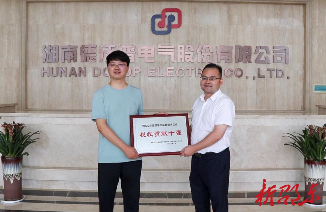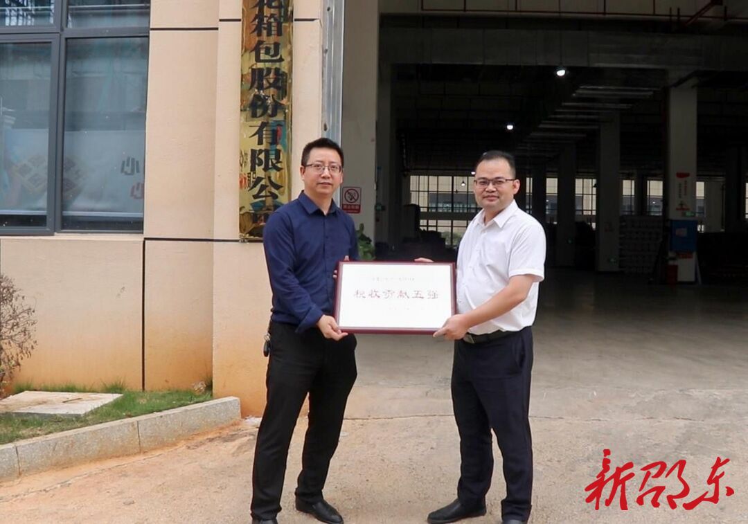 据了解,此次共有45家企业获得邵东市税收突出贡献表彰。其中,湖南省醇龙箱包股份有限公司在2022年度凭借纳税421.83万元,荣获“邵东市‘专精特新’小巨人税收贡献5强”表彰;湖南德沃普电器股份有限公司凭借纳税53.38万元,荣获“邵东市高新技术企业税收贡献10强”表彰。