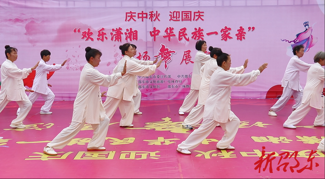 新邵东客户端9月25日讯(记者 刘亦可)为进一步弘扬优秀传统文化,促进全民族团结深入开展,丰富邵东市人民群众文化生活,推进全市群众文化繁荣发展,9月25日上午,邵东市在昭阳公园举办以“欢乐潇湘 中华民族一家亲”为主题的“庆中秋 迎国庆”广场舞展演活动。