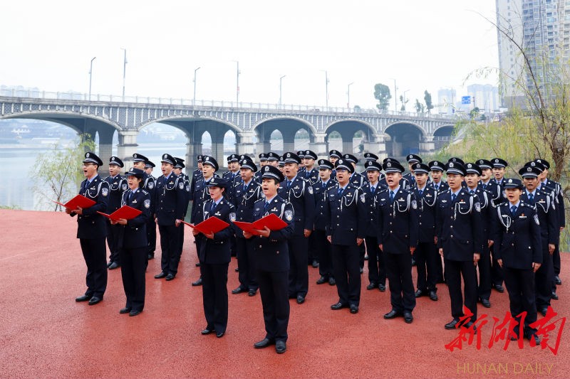 (1 月 6日,湖南边检总站指导所属长沙、张家界、岳阳三个边检站开展重温入警誓词。 通讯员 摄)