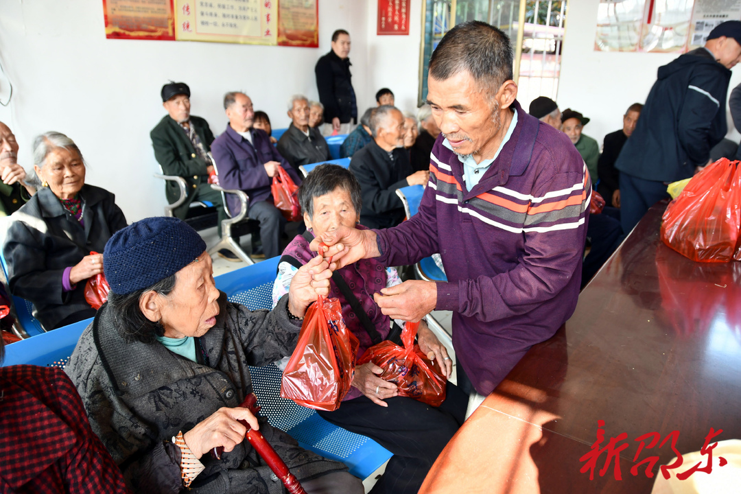 新邵东客户端10月23日讯(记者 邓远)重阳敬桑榆,情暖老人心。10月23日,在邵东市九龙岭镇的桥头冲村村委会,村民郑佰平为该村70余名80岁以上的老人送上了总价值5000余元的慰问品。