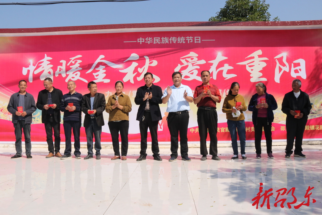 新邵东客户端10月24日讯(记者 刘意忠 通讯员 宁建华)10月23日,邵东市灵官殿镇花园村举行“情暖金秋·爱在重阳”联谊会。全村60岁以上老人欢聚一堂,共品重阳宴,共享敬老情。
