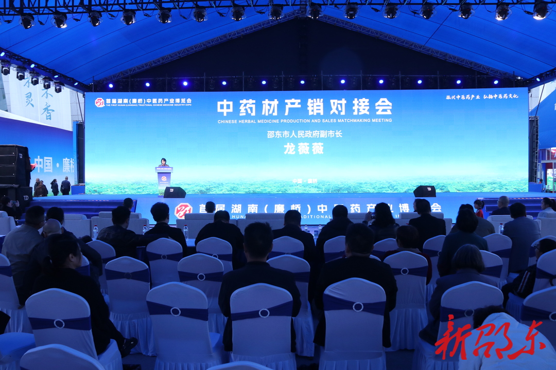 邵东市副市长龙薇薇出席中药材产销对接会并致辞。龙薇薇说,邵东中医药历史文化深厚,中药材种植历史悠久,全市中药材种植面积达21.7万亩,中药材种植户5万余户、中药材规模加工生产企业16家,廉桥中药材市场经营户1200多户,中药材全产业链产值达120亿元。龙薇薇表示,邵东市将以首届湖南(廉桥)中医药产业博览会成功举办为契机,进一步擦亮“南国药都”金字招牌,以更高标准、更宽视野、更强合力,把廉桥打造成服务全省、闻名全国、联通世界的中医药产业高地。
