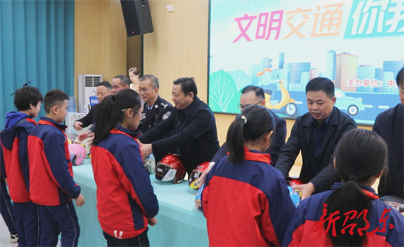 周玉凡、陈业华、夏立坤等还向群众代表、学生代表赠送了安全头盔。