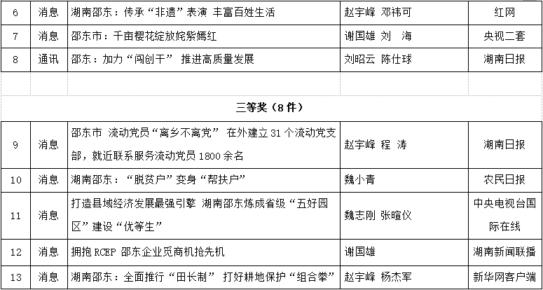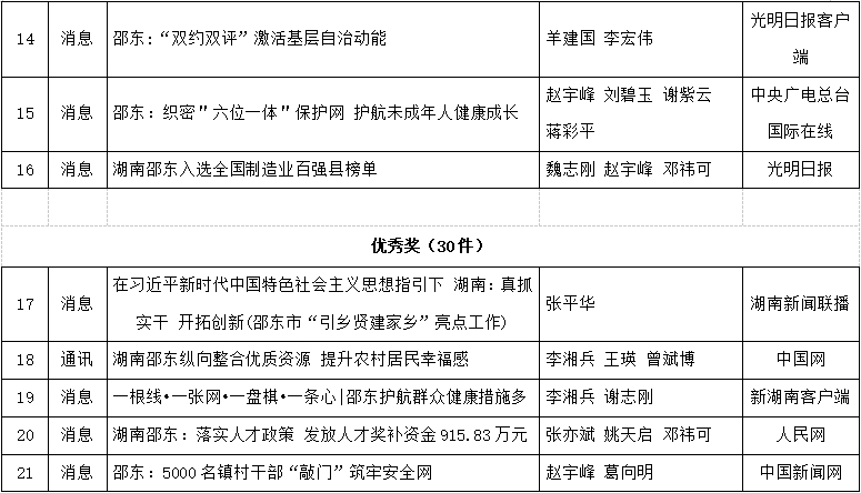 根据《邵东市严怪愚新闻奖评选奖励办法》(邵办文〔2019〕66号),市委宣传部部务会研究决定组织开展2022年度严怪愚新闻奖评选。按照初评、复评、终评程序,共评选出拟获奖作品46件,其中拟获一等奖作品3件,拟获二等奖作品5件,拟获三等奖作品8件,拟获优秀奖作品30件。