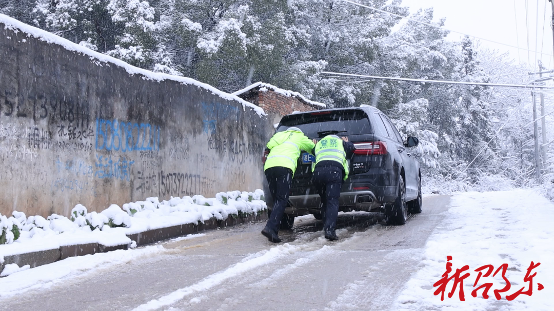 邵东迎来今年初雪 交警抗雪保畅在行动