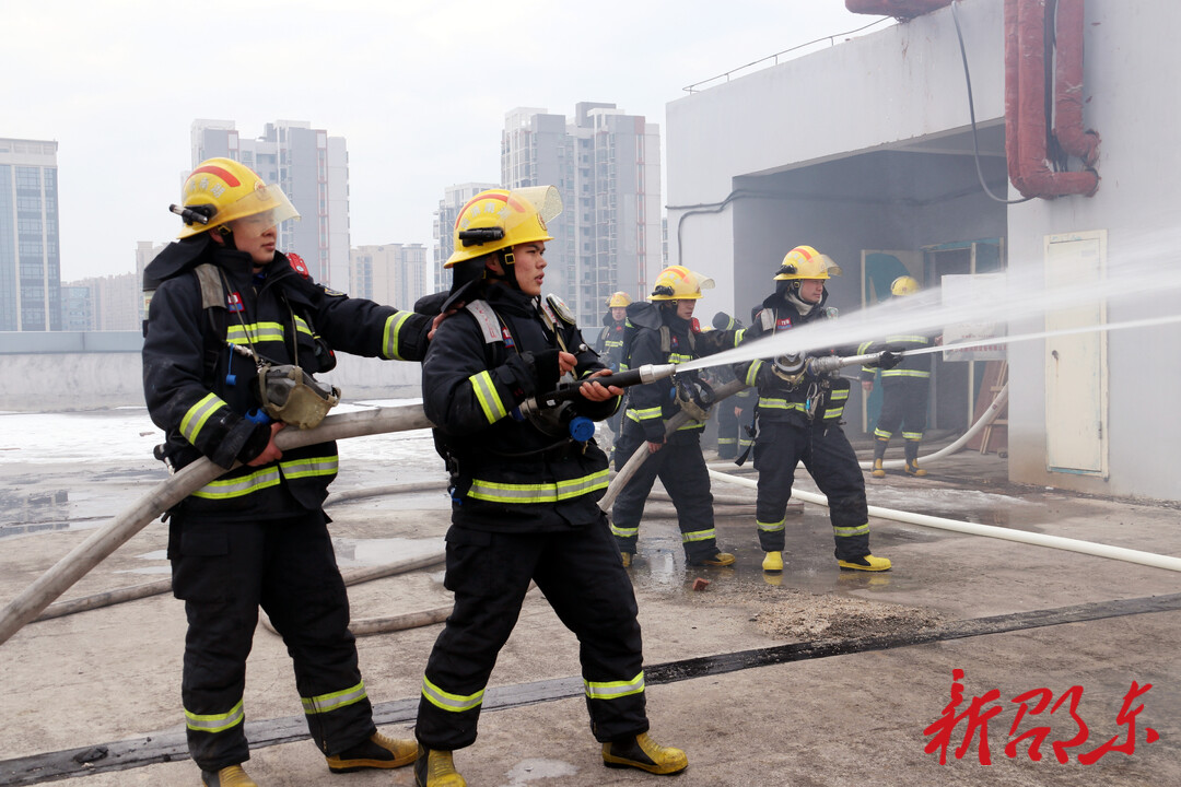 新邵东客户端1月25日讯(记者 刘意忠)1月24日下午,邵东市消防救援大队走进星沙物流园,开展灭火救援实战演练。