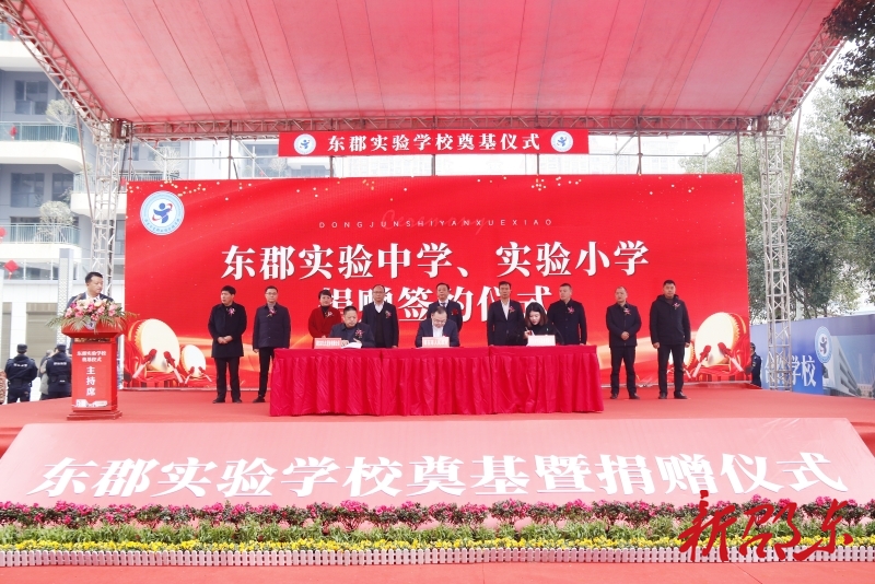 邵东市委副书记、统战部长刘家豪在致辞中指出,九久置业和中际置业两家公司联合捐建东郡实验学校,是造福社会之壮举、回报家乡之义举、传递爱心之善举。市委、市政府将把东郡实验小学、实验中学的建设作为2024年重要民生项目来抓。全力确保学校建设进度,高效率组织协调,调动一切积极因素,采取一切非常措施,特事特办,快事快办,确保在9月1日前完成一期工程并交付使用。全力确保学校建设质量,以最大力度保障两所学校高起点规划、高品位设计、高标准建设、高质量完成。全力确保学校建设安全,全面优化管理和服务,确保与学校建设直接相关的人、物、事,依法依规,安全运行,顺利运转。刘家豪说,当前,邵东正在大力开展“迎乡贤建家乡”活动,期待广大客商、广大乡贤踊跃来邵投资兴业,与邵东共同成长,一起发展壮大。
