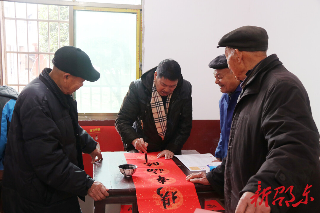 新邵东客户端1月30日讯(记者 曾超众 实习生 唐湘)1月30日上午,邵东市文联组织市楹联家协会、市书法家协会的10余骨干会员到简家陇镇羊家冲村开展“文化下基层,春联送万家”活动,为村民们送春联送祝福,受到大家的热烈欢迎。