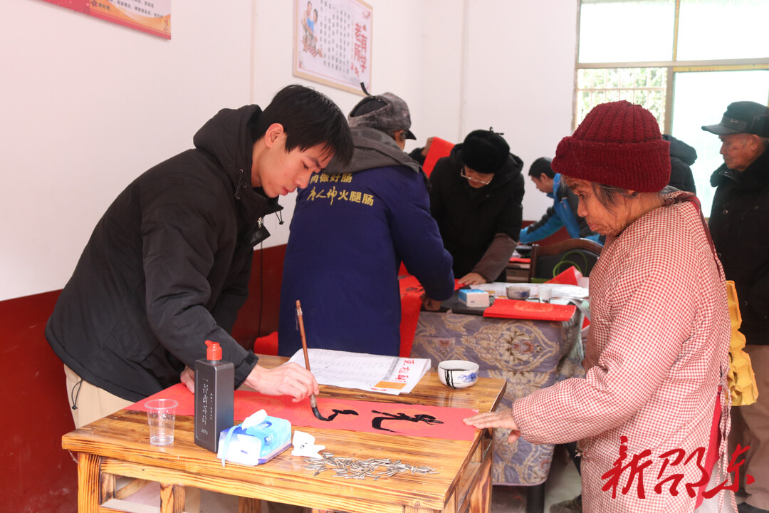 在羊家冲村服务中心,翰墨飘香,暖意融融。随着红色纸张铺开,书法家们挥毫泼墨、笔走龙蛇,将美好的祝愿化作一幅幅充满喜庆、寓意吉祥的春联,赠送给村民。村民们领到心仪的春联连连称赞,喜悦之情溢于言表,活动现场一派喜气祥和的景象。据统计,当天活动共送出350余副春联。