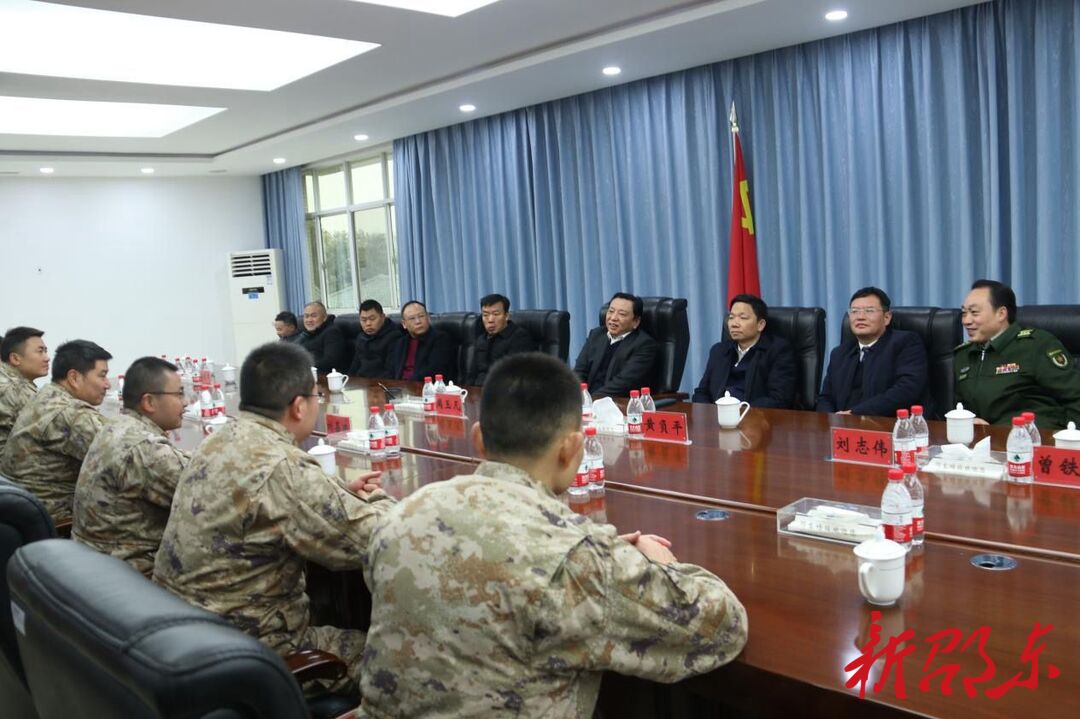 新邵东客户端2月5日讯(记者 刘意忠)2月5日,邵东市委书记周玉凡带队走访慰问驻邵部队和消防救援人员,代表市委、市人大、市政府、市政协和全市人民向他们致以崇高敬意和新春祝福,对大家为邵东经济社会发展作出的重要贡献表示衷心感谢。市领导李国军、刘家豪、黄负平、罗健康、刘志伟、李佑军、曾铁钧、唐志军等参加慰问活动。
