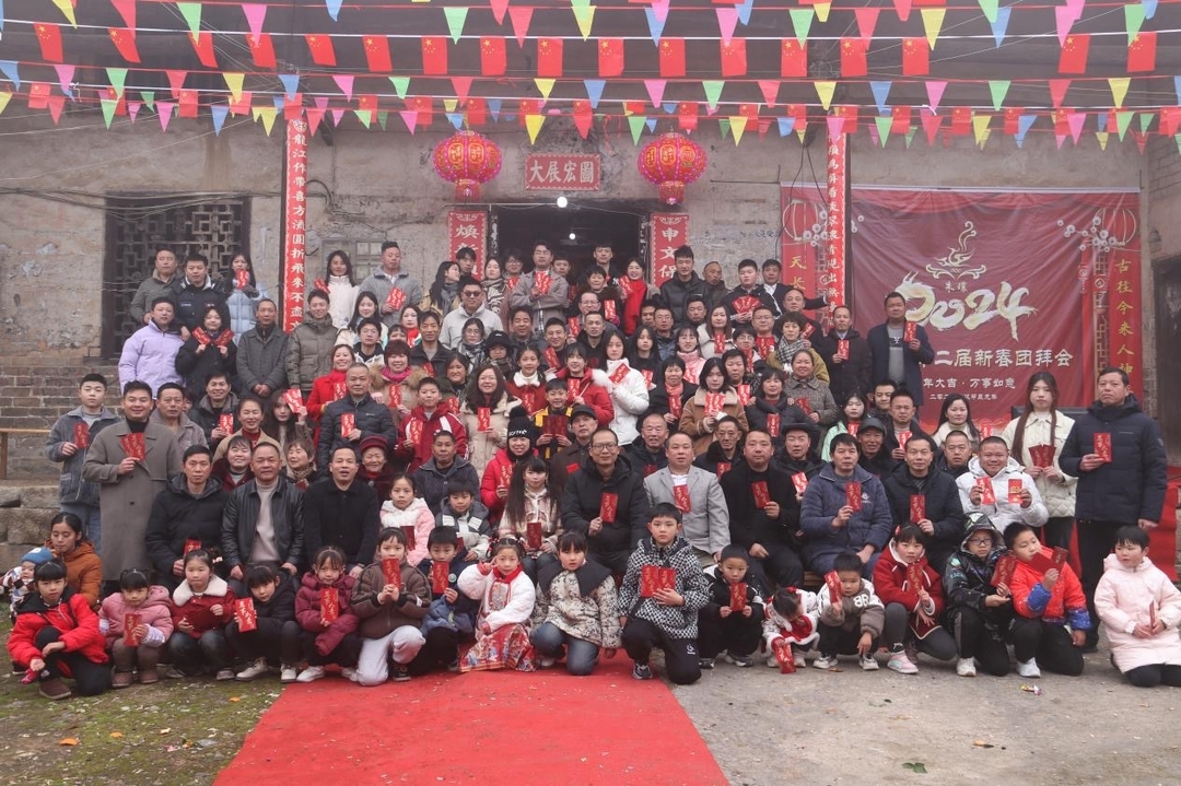 新邵东客户端2月11日讯(记者 刘意忠)2月10日,大年初一上午。邵东市灵官殿镇花园村朱壤屋举行新春团拜会,朱壤屋居民及亲友近200人欢聚一堂,互致新春祝福,倡导文明新风。